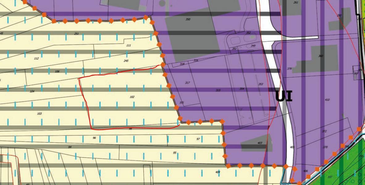 Plan initial de l’extension de la ZAE en 2024 incluant la parcelle :Plan de l’extension de la ZAE modifié par l’avenant du 7 avril 2025 sur lequel la parcelle 102 ne fait plus partie de la zone d’agrandissement :