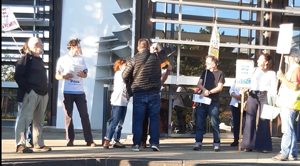 Nous avons distribué aux élu-es le tract « Les magouilles de la Communauté de communes pour livrer les terres du Grésivaudan aux industries de l’électronique » qui dénonce la soumission de la CCLG aux intérêts des industriels de semi-conducteurs et la collusion public-privé. Étaient aussi présents le collectif Grignon, Bern’Informé, le collectif Grésivaudan Non au Lyon-Turin, GRENE et EELV Grésivaudan, soit au total une trentaine de personnes dans une ambiance bon enfant.