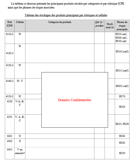 De quels produits s’agit-il exactement ? Il est quasiment impossible de le savoir. En effet, la préfecture ne publie à ce sujet que des documents où les informations sensibles ont été supprimées. En voici un exemple19 :