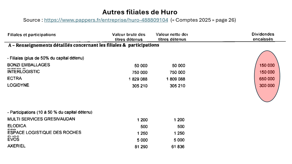 30Ces informations proviennent du site https://www.pappers.fr. Voir en particulier https://www.pappers.fr/entreprise/huro-488809104, https://www.pappers.fr/entreprise/vitalog-finances-groupe-832530224 et les pages connexes.